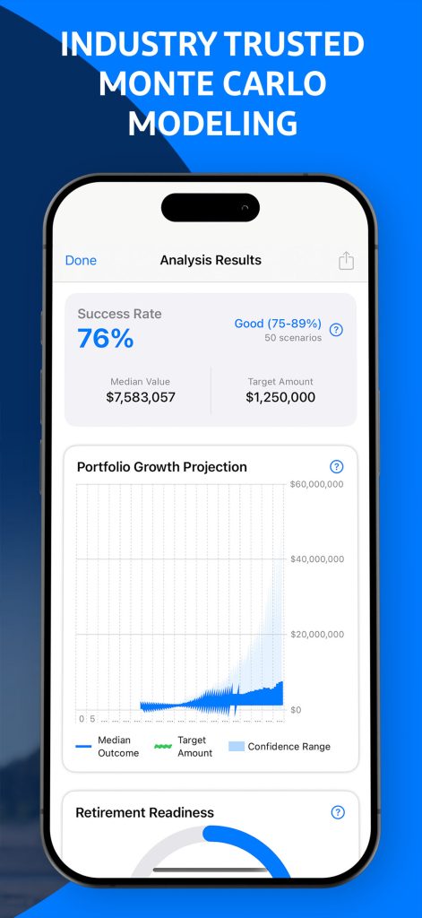 By playing “what-if” with the app, you can see how steps like saving more, retiring later, or changing withdrawal rates would impact your success rate. It transforms vague worry into concrete probabilities.