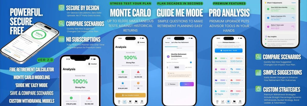 Your response exceeded our expectations. Hundreds of FIRE pursuers, early retirees, and pre-retirees have trusted us with their retirement planning. You’ve run tens of thousands of Monte Carlo scenarios. You’ve validated your 4% withdrawal strategies. You’ve stress-tested your plans against market crashes and sequence-of-returns risk.